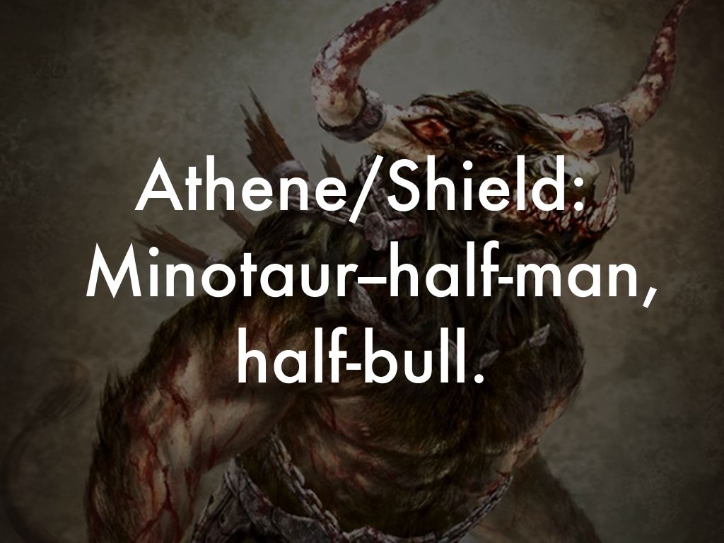 Athene/Shield: Minotaur--half-man, half-bull.