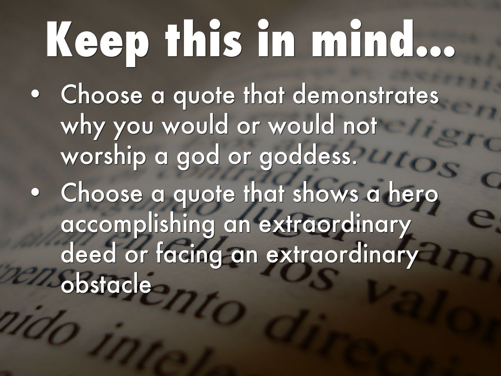 • Choose a quote that shows a hero accomplishing an extraordinary deed or facing an extraordinary obstacle