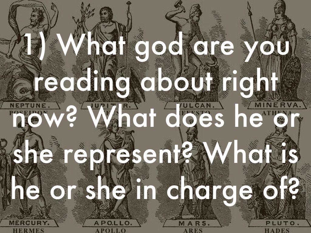 1) What god are you reading about right now? What does he or she represent? What is he or she in charge of?
