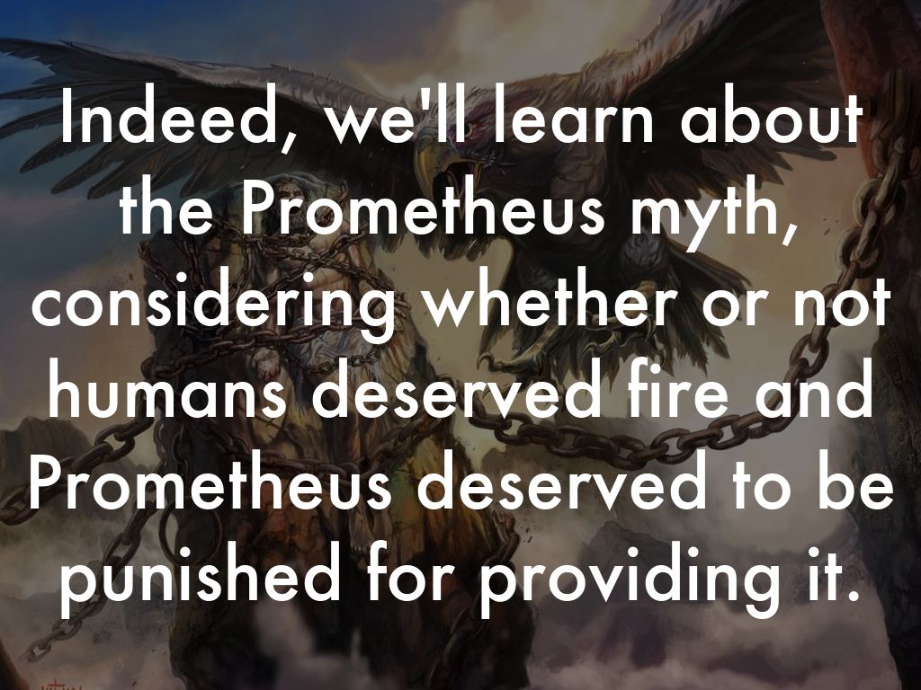 Indeed, we'll learn about the Prometheus myth, considering whether or not humans deserved fire and Prometheus deserved to be punished for providing it.