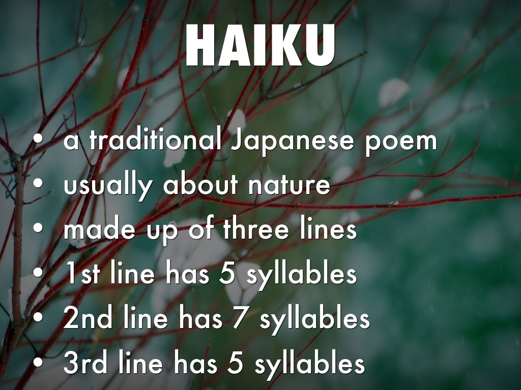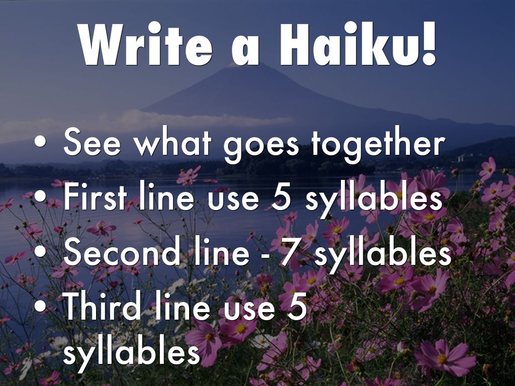 A brief description of how to write haikus for first to third graders. Sample poems and lines are included.