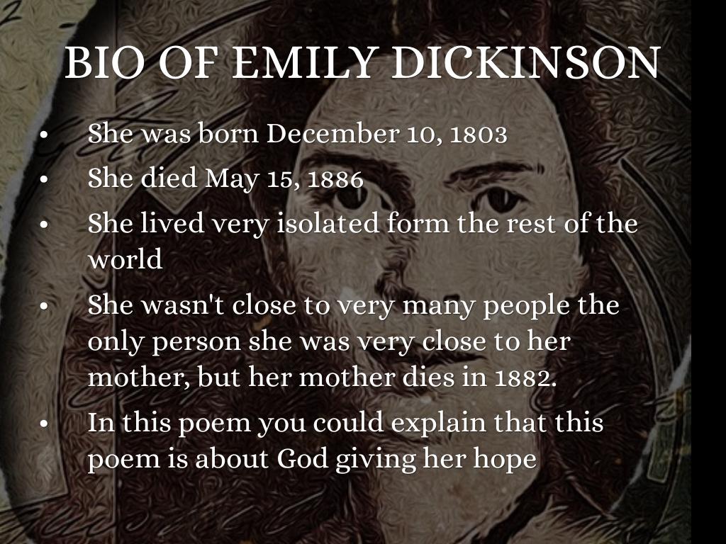 In this poem you could explain that this poem is about God giving her hope through grough times
