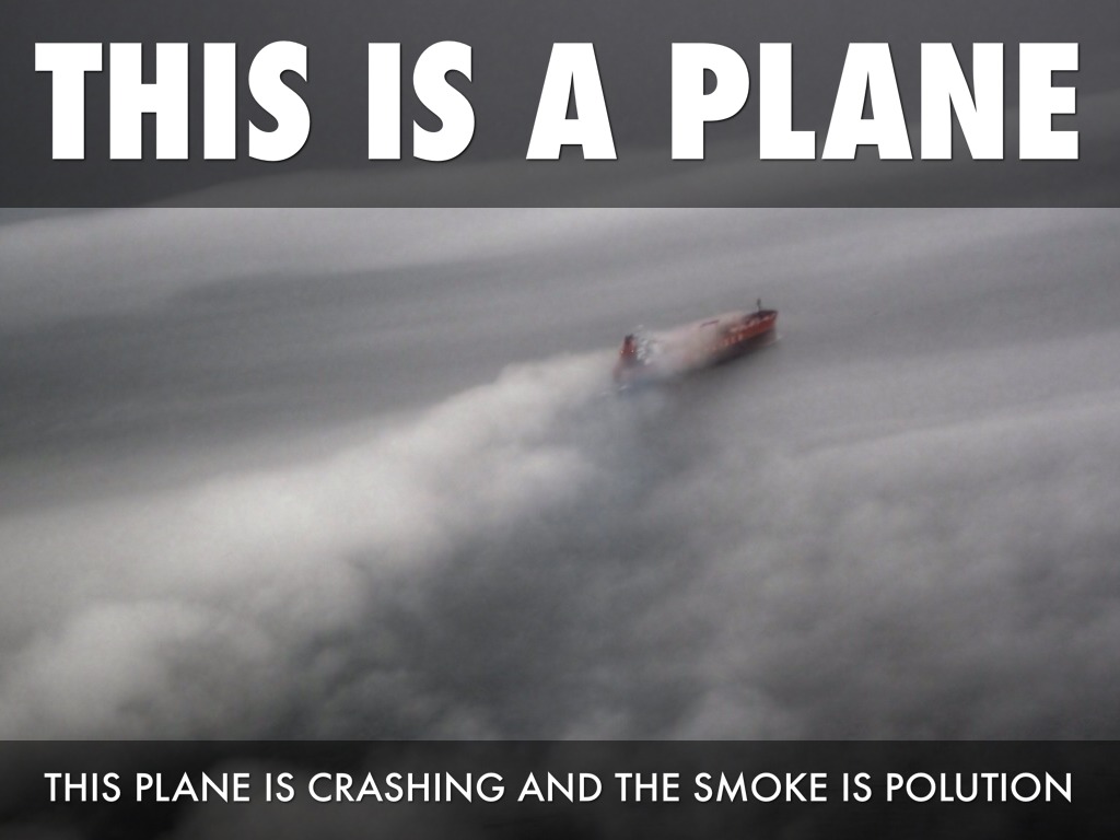THIS PLANE IS CRASHING AND THE SMOKE IS POLUTION