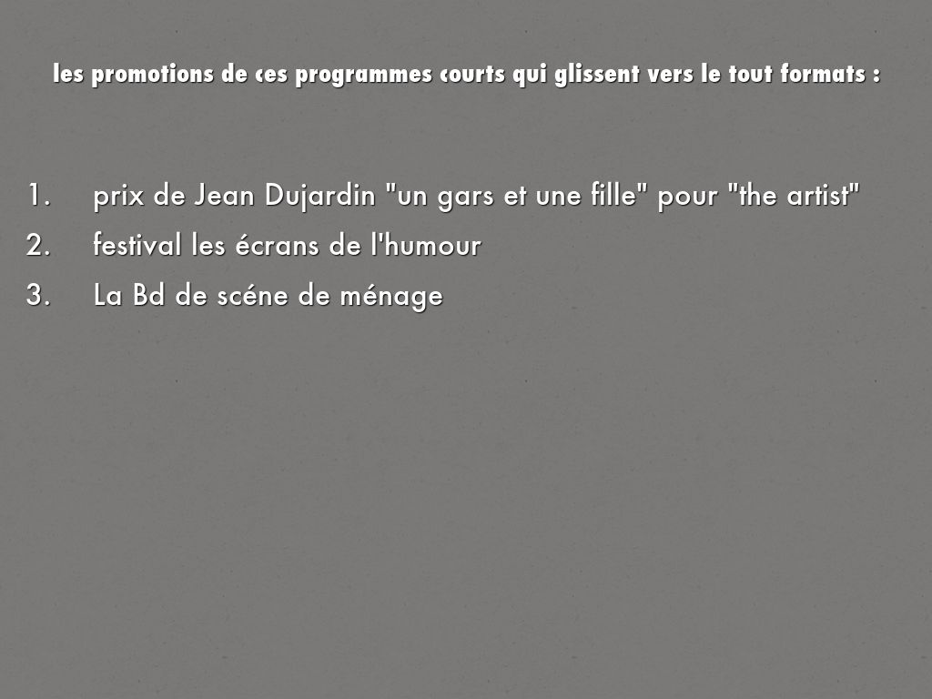 les promotions de ces programmes courts qui glissent vers le tout formats :