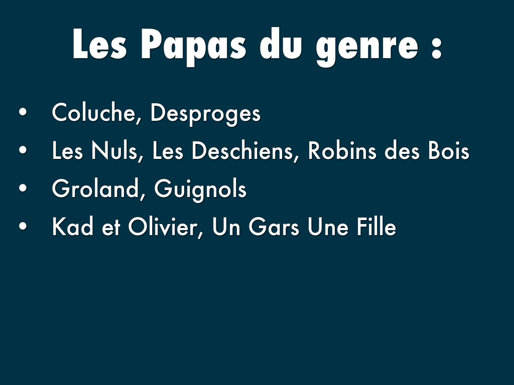 - Les Nuls, Les Deschiens, Robins des Bois