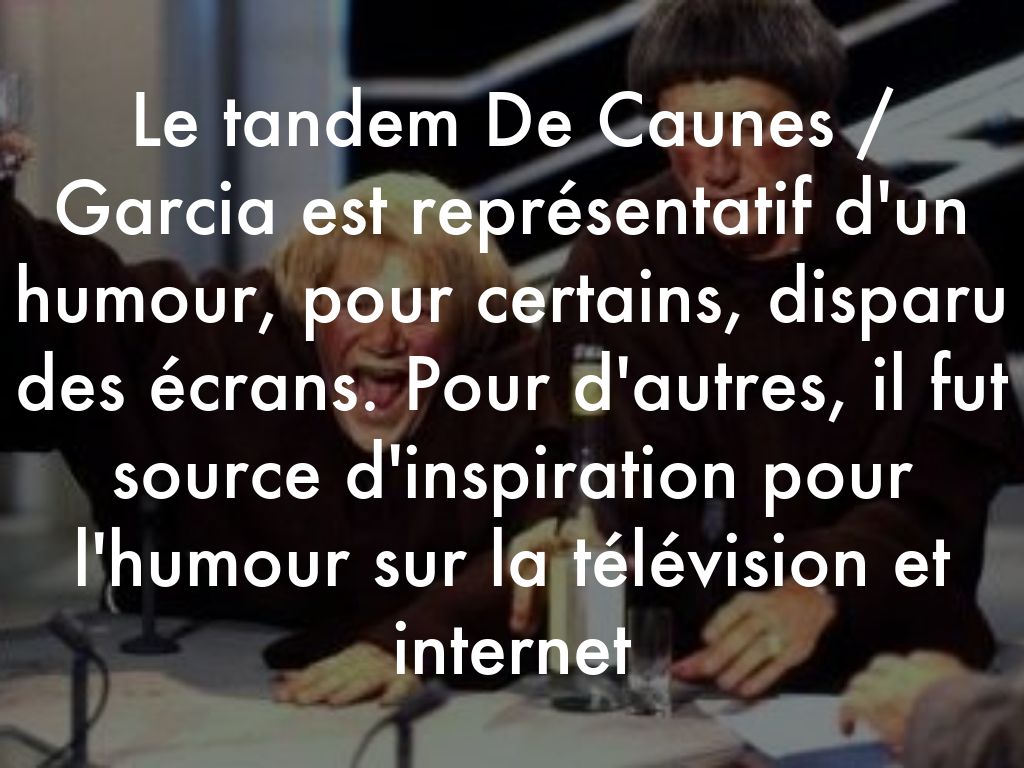 Le tandem De Caunes / Garcia est représentatif d'un humour, pour certains, disparu des écrans. Pour d'autres, il fut source d'inspiration pour l'humour sur la télévision et internet