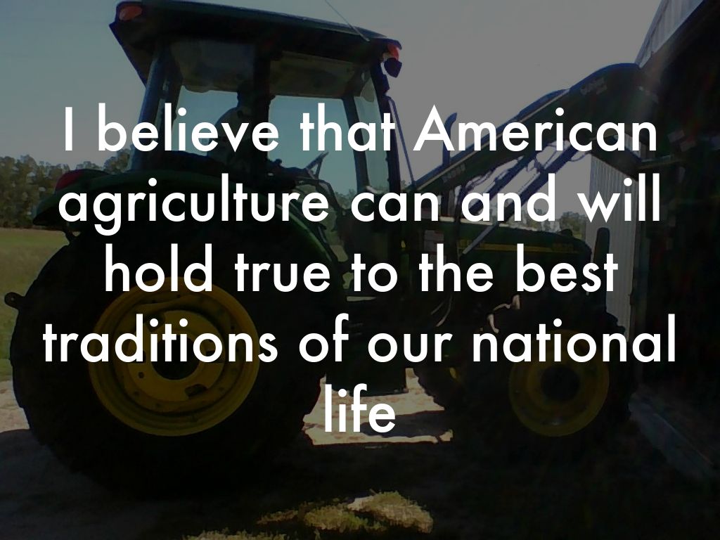 I believe that American agriculture can and will hold true to the best traditions of our national life