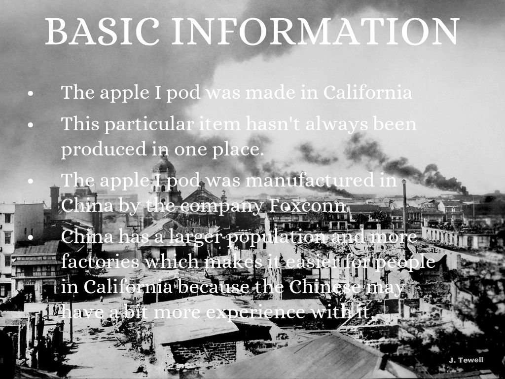 The apple I pod was manufactured in China by the company Foxconn