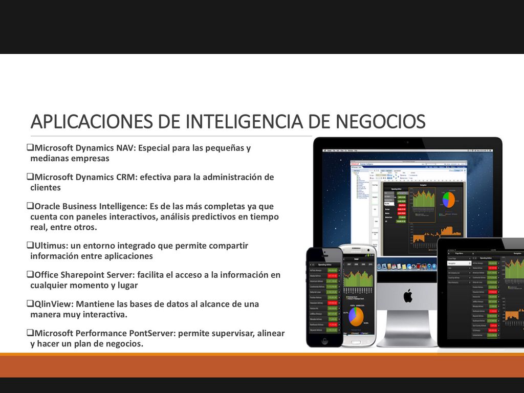 En conclusión, un sistema de BI debe llevar las operaciones de inteligencia de una organización (rendimiento empresarial, clientes, información financiera, capital humano, cadena de suministro, etc.) al siguiente nivel, poniendo la inteligencia en manos del mayor número posible de usuarios expertos, ejecutivos, gerentes, tecnólogos, etc.) en toda la organización, de una forma más eficaz y a un costo inferior.