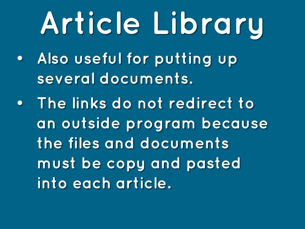 The links do not redirect to an outside program because the files and documents must be copy and pasted into each article.