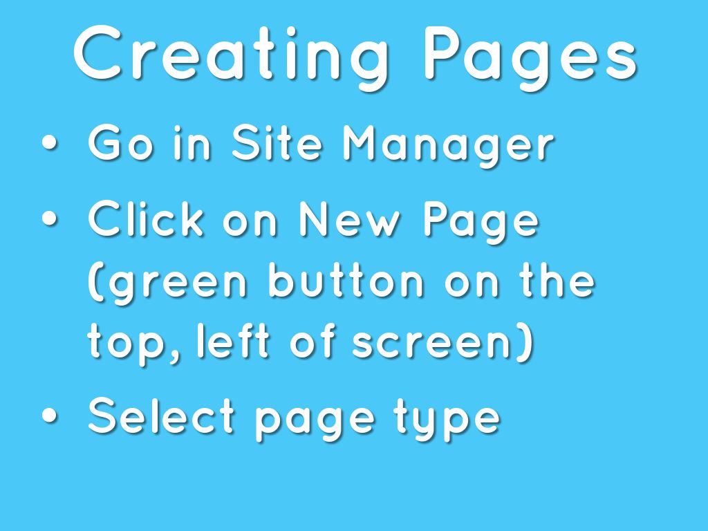 Click on New Page (green button on the top, left of screen)