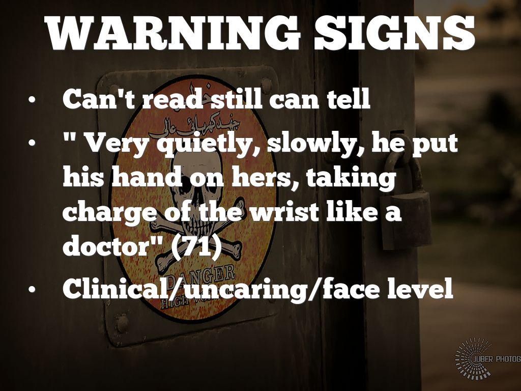 " Very quietly, slowly, he put his hand on hers, taking charge of the wrist like a doctor" (71)
