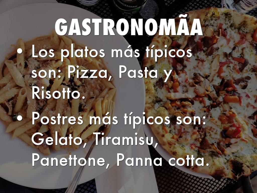 • Los platos más típicos son: Pizza, Pasta y Risotto.