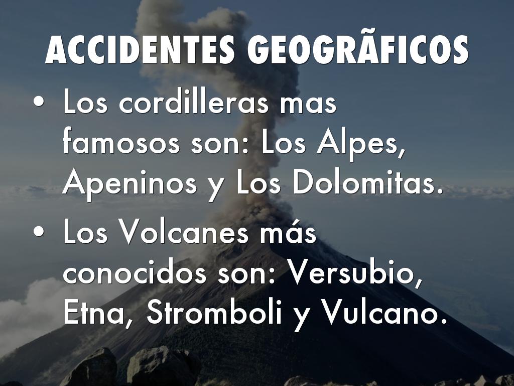 • Los Volcanes más conocidos son: Versubio, Etna, Stromboli y Vulcano.