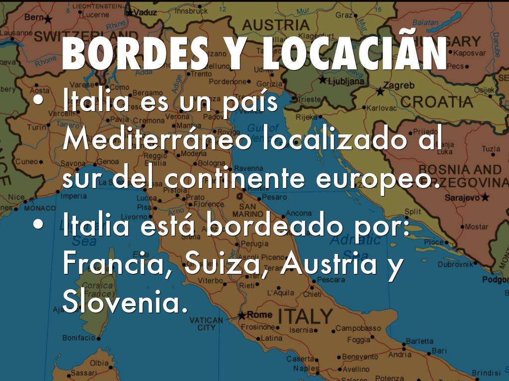 • Italia está bordeado por: Francia, Suiza, Austria y Slovenia.