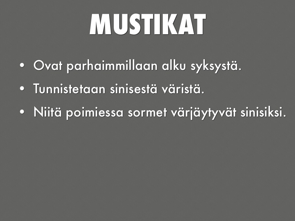 -Mustikat ovat parhaillaan loppukesästä ja alkusyksystä.