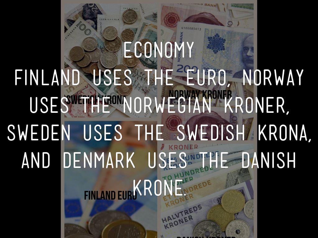 FINLAND USES THE EURO, NORWAY USES THE NORWEGIAN KRONER, SWEDEN USES THE SWEDISH KRONA, AND DENMARK USES THE DANISH KRONE.