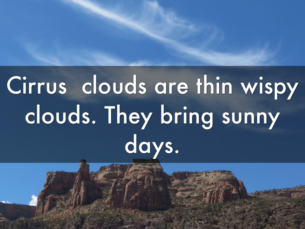 Cirrus clouds are thin wispy clouds. They bring sunny days.