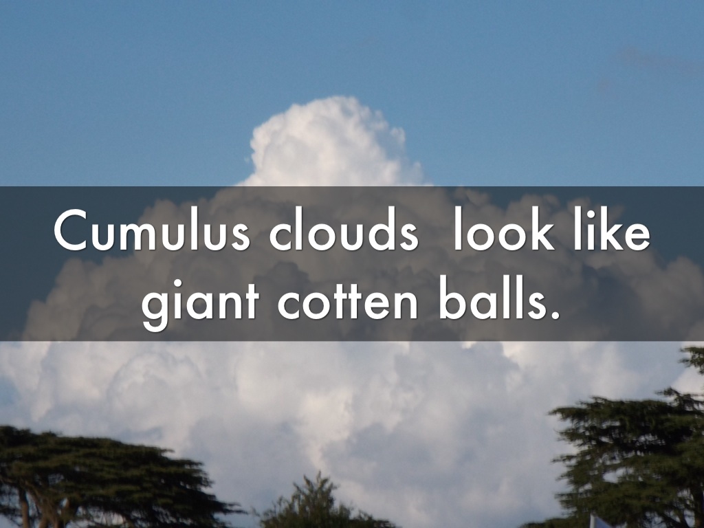 Cumulus clouds look like giant cotten balls.