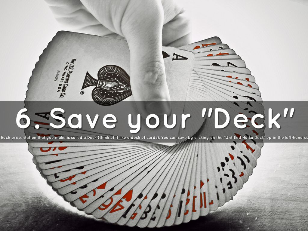Experiment with some of the different things you can do with Haiku Deck. Try some different background options, themes, layouts. Remember, though, you don't want what's on your slides to distract from your actual presentation! Themes, pictures, layouts should enhance your ideas, not take away from them!