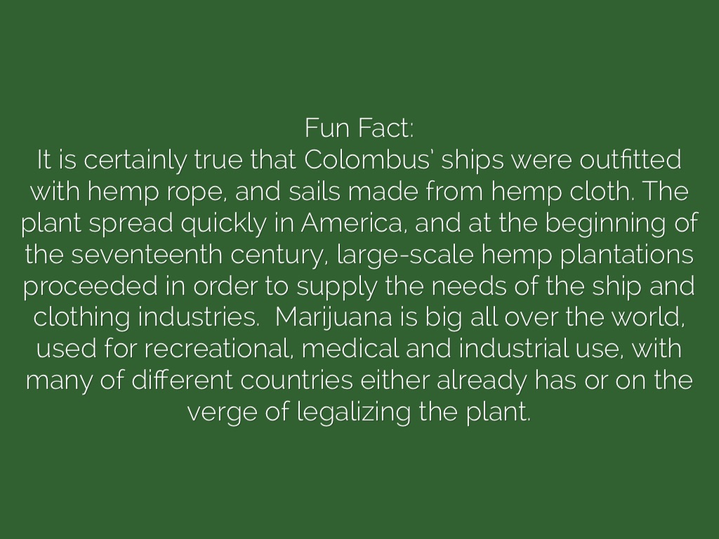 It is certainly true that Colombus’ ships were outfitted with hemp rope, and sails made from hemp cloth. The plant spread quickly in America, and at the beginning of the seventeenth century, large-scale hemp plantations proceeded in order to supply the needs of the ship and clothing industries. Marijuana is big all over the world, used for recreational, medical and industrial use, with many of different countries either already has or on the verge of legalizing the plant.
