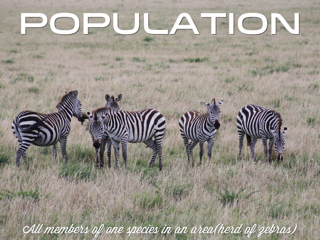 Members of a community plus the abiotic factors that affect them(Rain to provide water for plants and animals).