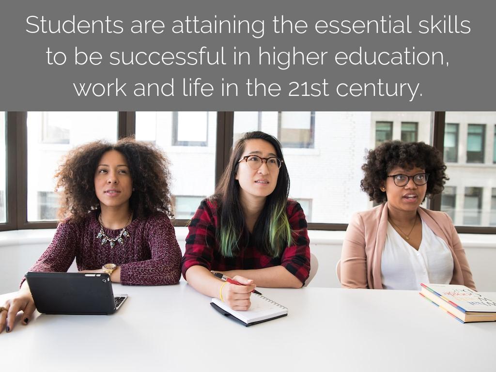 Students are attaining the essential skills to be successful in higher education, work and life in the 21st century.