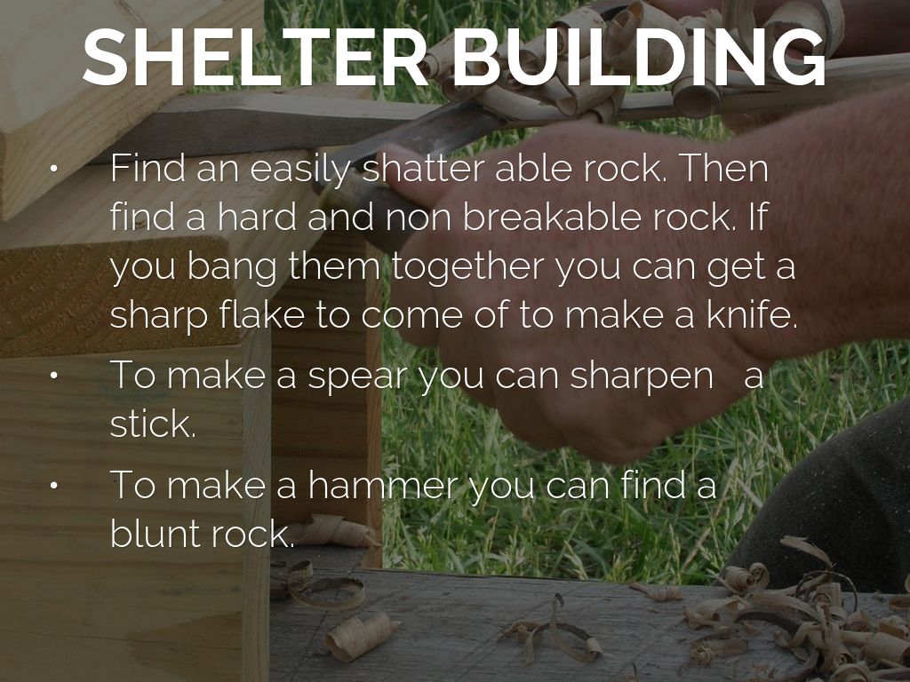 Find an easily shatter able rock. Then find a hard and non breakable rock. If you bang them together you can get a sharp flake to come of to make a knife.
