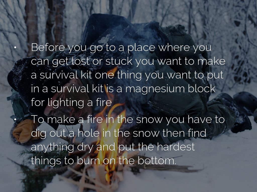Before you go to a place where you can get lost or stuck you want to make a survival kit one thing you want to put in a survival kit is a magnesium block for lighting a fire