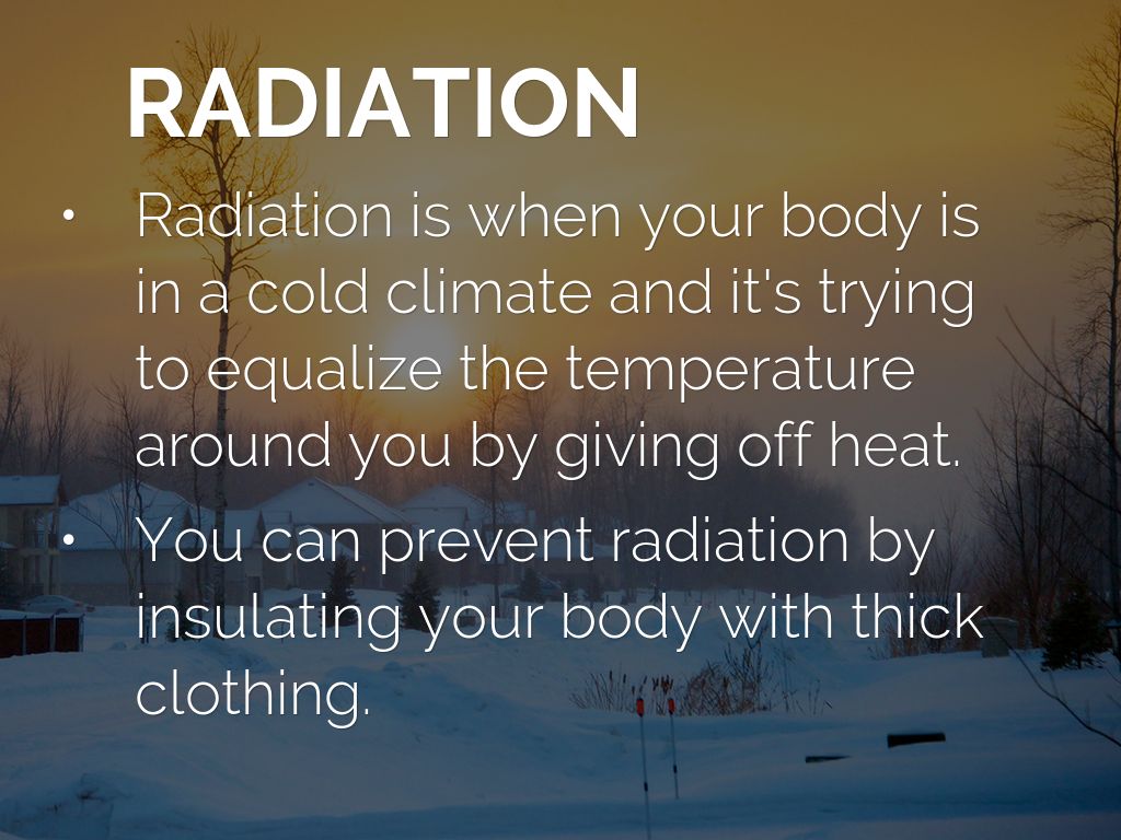 Like radiation your body is trying to equalize the temperature between and a solid, liquid, or gas.