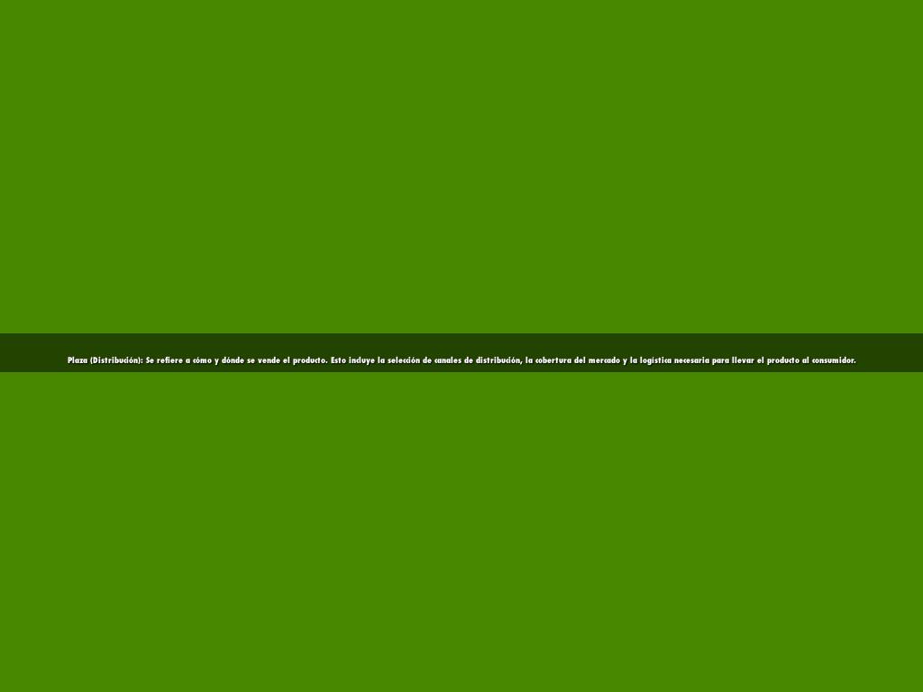 Plaza (Distribución): Se refiere a cómo y dónde se vende el producto. Esto incluye la selección de canales de distribución, la cobertura del mercado y la logística necesaria para llevar el producto al consumidor.