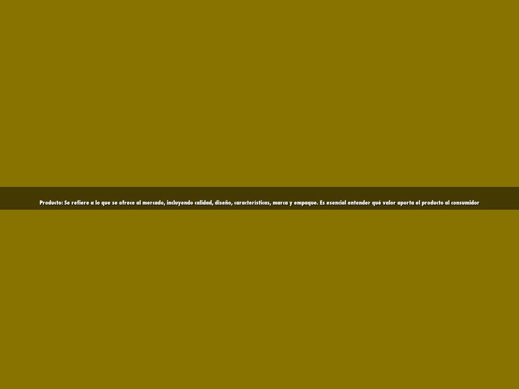Producto: Se refiere a lo que se ofrece al mercado, incluyendo calidad, diseño, características, marca y empaque. Es esencial entender qué valor aporta el producto al consumidor