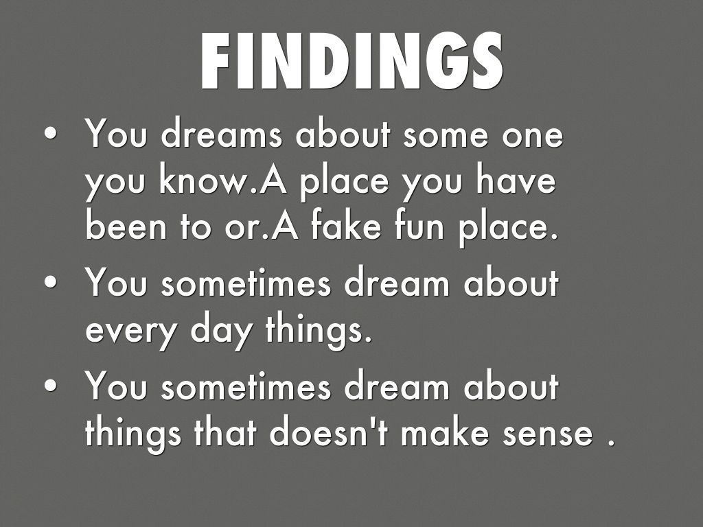 You dreams about some one you know.A place you have been to or.A fake fun place.