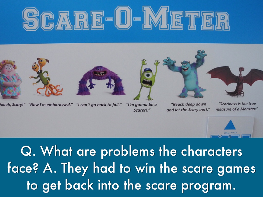 Q. What are problems the characters face? A. They had to win the scare games to get back into the scare program.