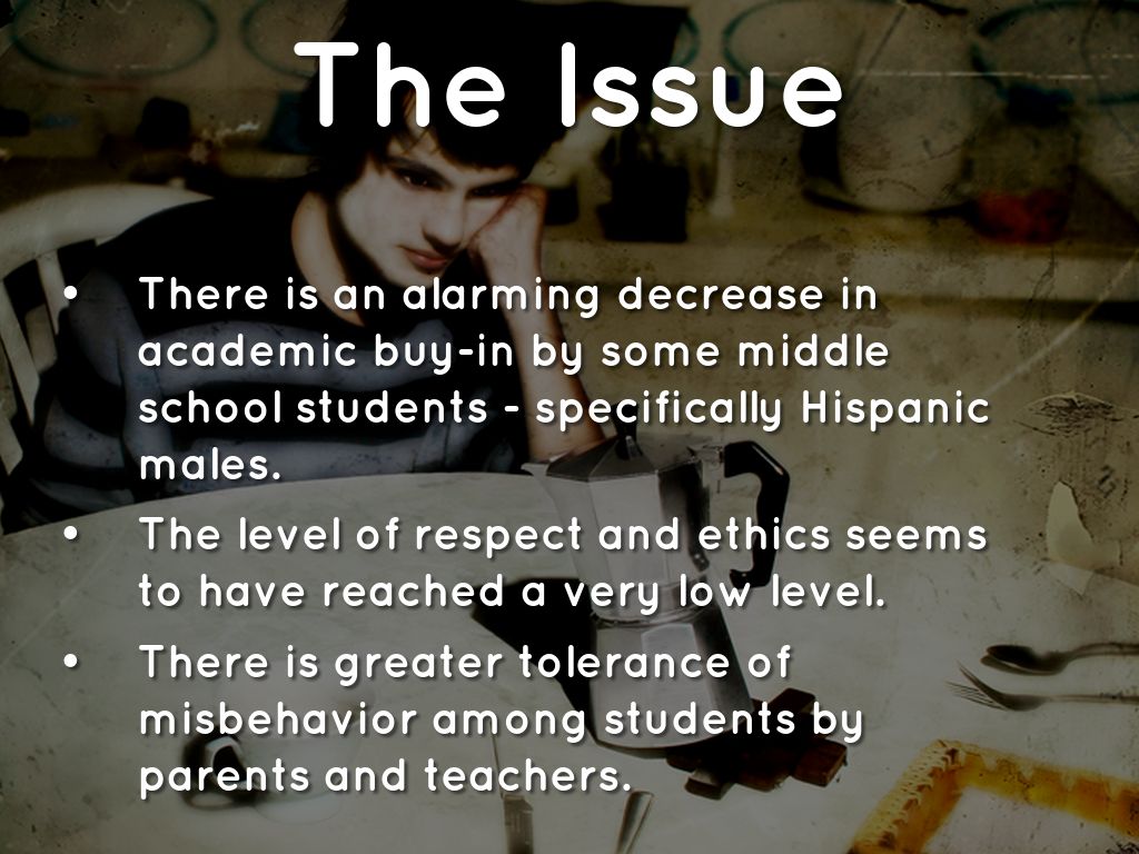 There is an alarming decrease in academic buy-in by some middle school students - specifically Hispanic males.
