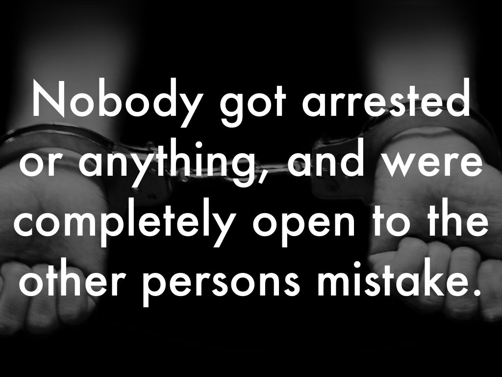 Nobody got arrested or anything, and were completely open to the other persons mistake.