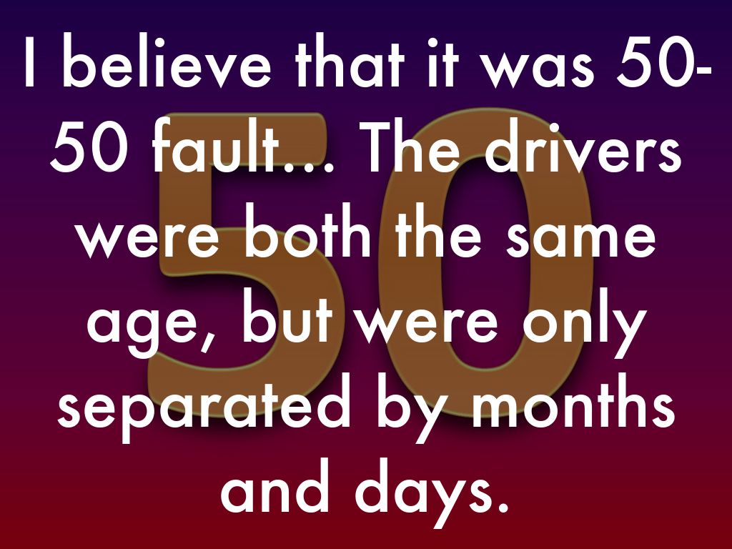 I believe that it was 50-50 fault... The drivers were both the same age, but were only separated by months and days.