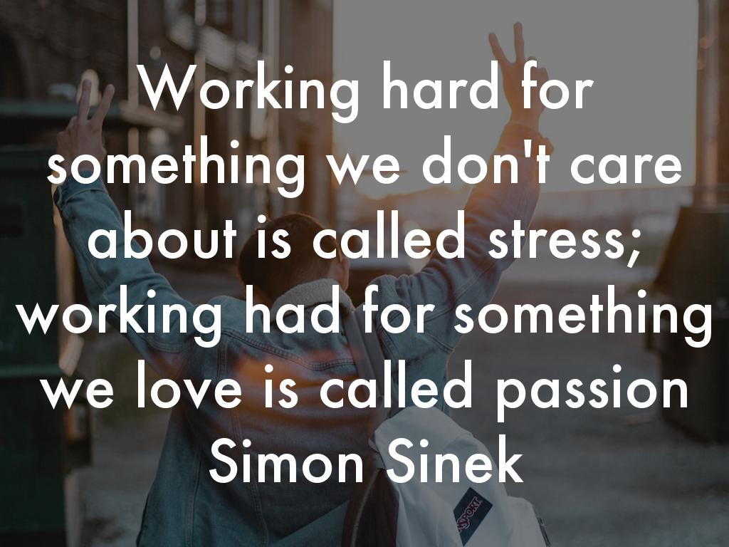 Working hard for something we don't care about is called stress; working had for something we love is called passion Simon Sinek