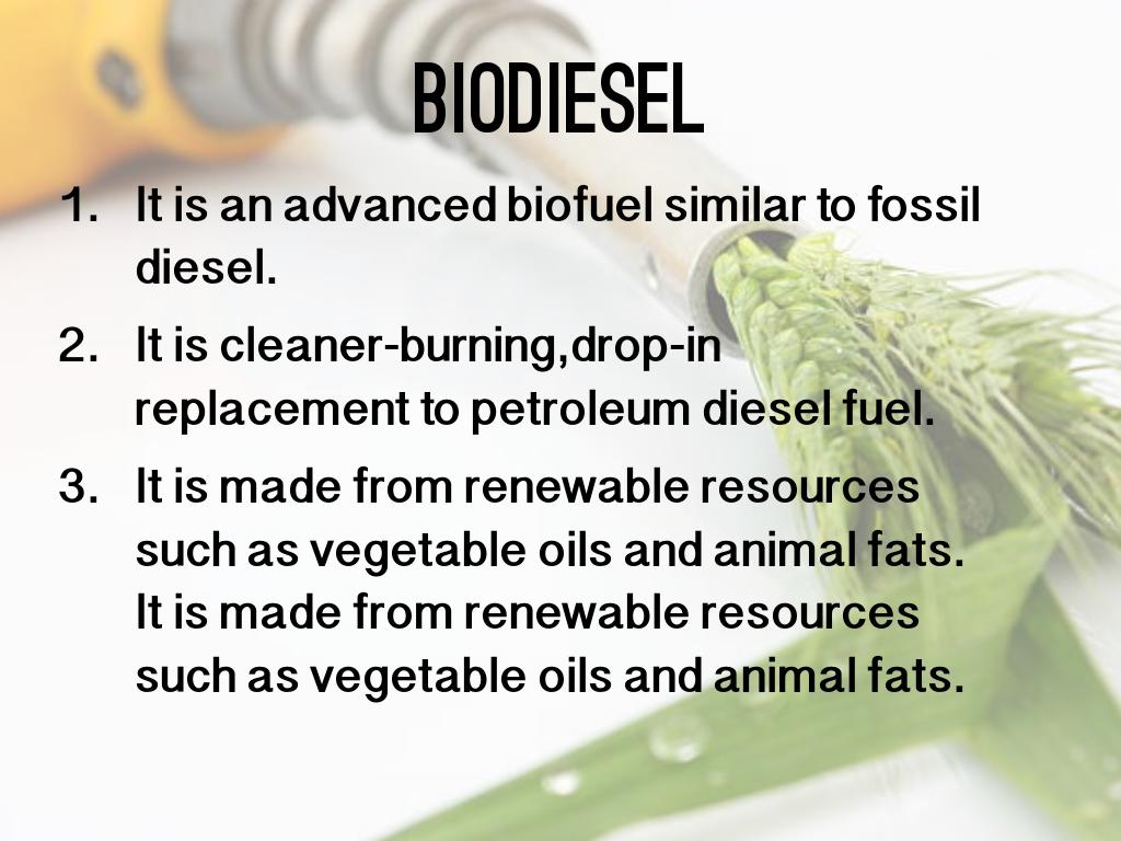 It is cleaner-burning,drop-in replacement to petroleum diesel fuel.