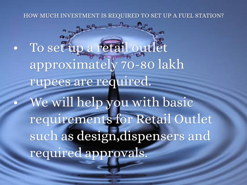 • To set up a retail outlet approximately 70-80 lakh rupees are required.