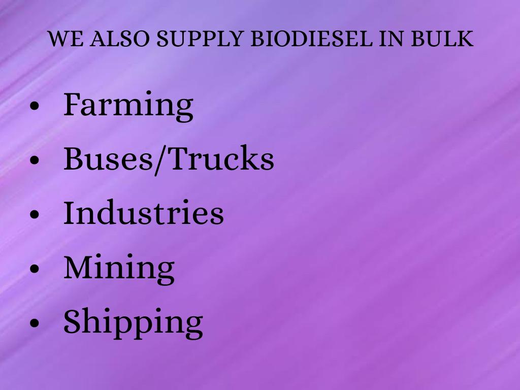 WE ALSO SUPPLY BIODIESEL IN BULK