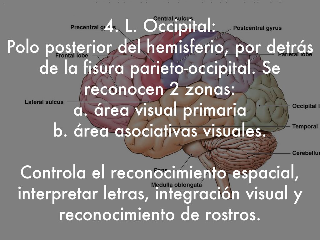 Polo posterior del hemisferio, por detrás de la fisura parieto-occipital. Se reconocen 2 zonas: