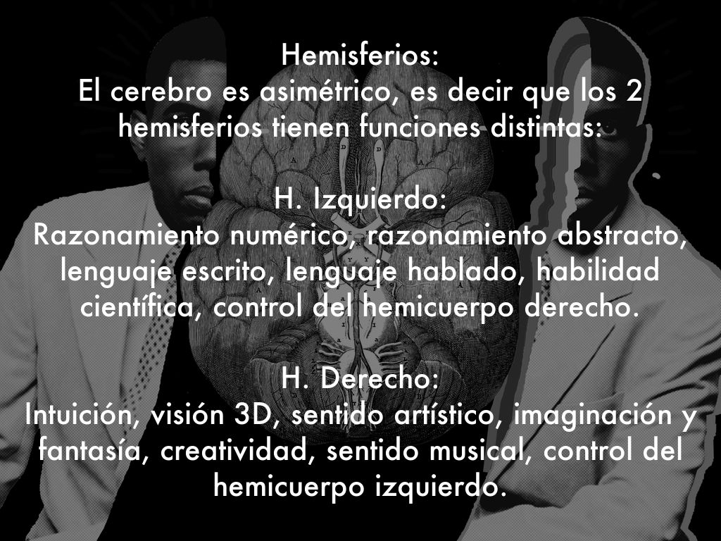 El cerebro es asimétrico, es decir que los 2 hemisferios tienen funciones distintas: