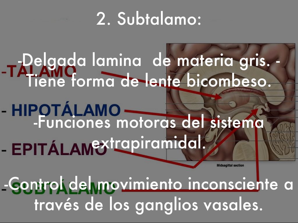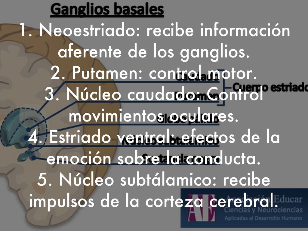 5. Núcleo subtálamico: recibe impulsos de la corteza cerebral.