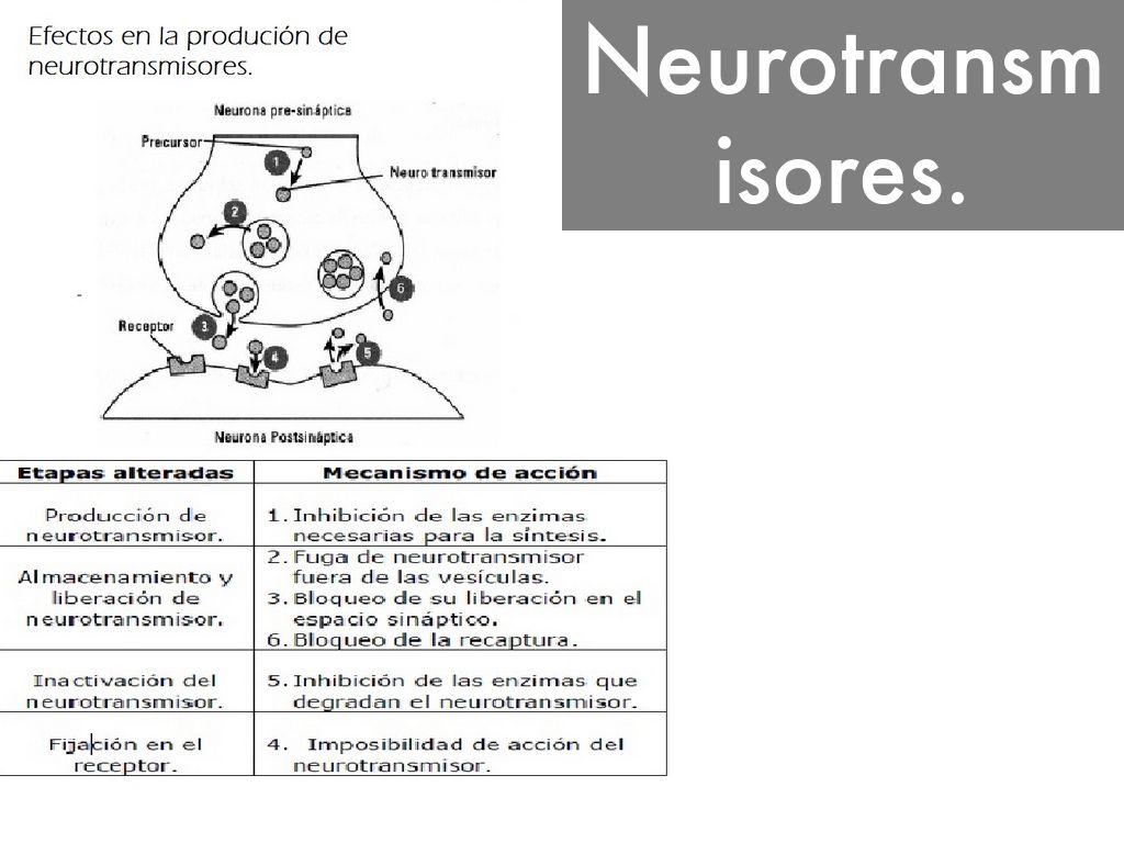 Efectos en el almacenamiento y liberación de los Neurotransmisores: