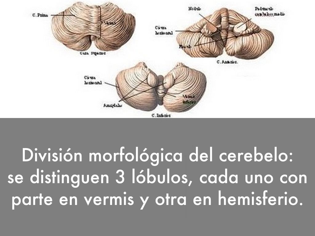 se distinguen 3 lóbulos, cada uno con parte en vermis y otra en hemisferio.