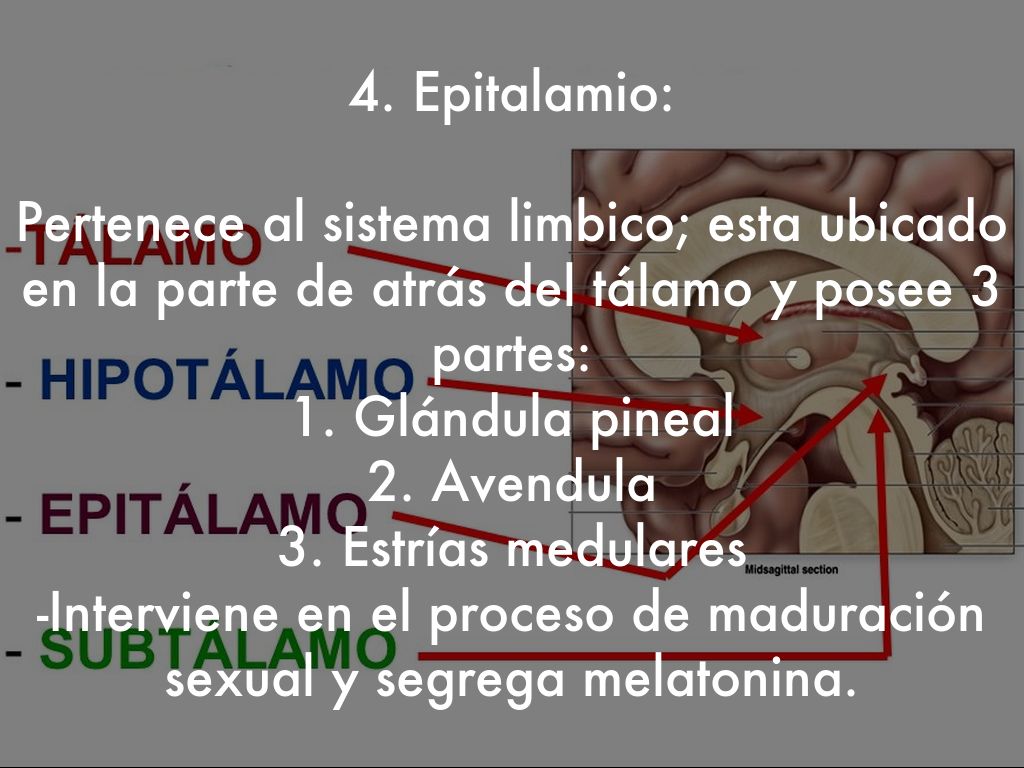 5. Hipotálamo: respuestas corporales de las emociones. Se conecta a través de los cuerpos mamilares.