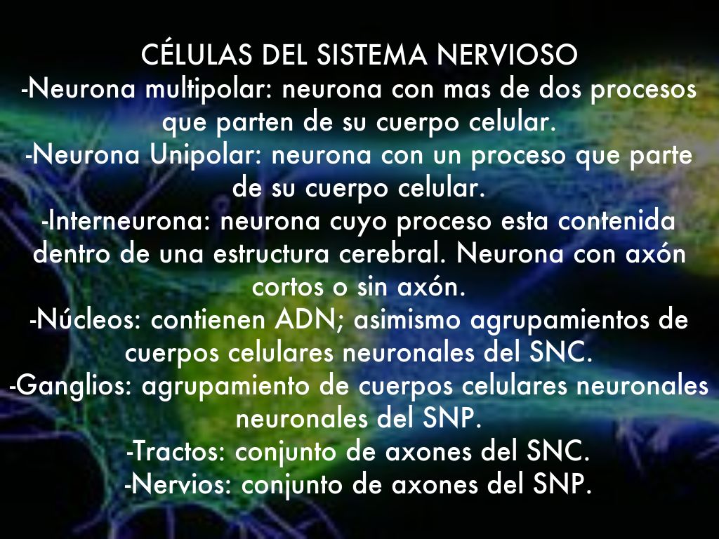 -Neurona Unipolar: neurona con un proceso que parte de su cuerpo celular.