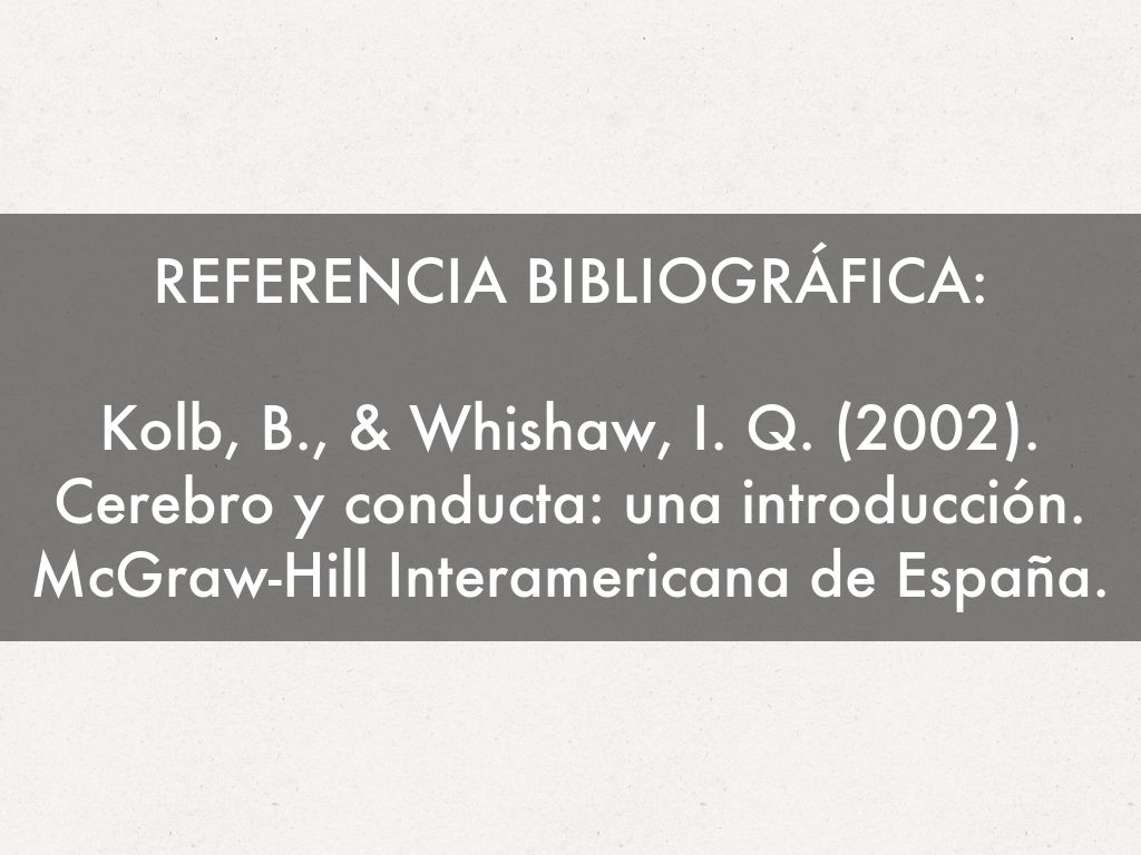Kolb, B., & Whishaw, I. Q. (2002). Cerebro y conducta: una introducción. McGraw-Hill Interamericana de España.