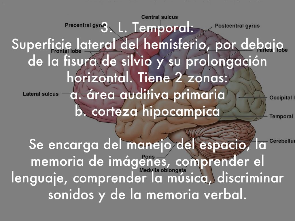 Superficie lateral del hemisferio, por debajo de la fisura de silvio y su prolongación horizontal. Tiene 2 zonas:
